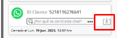 Una vez que se llena la información se da clic en Filtrar y si hay conversaciones que cumplan con lo enviado aparecerán como listado y mostraran la información de Id cliente, fecha de cierre y razón del cierre: