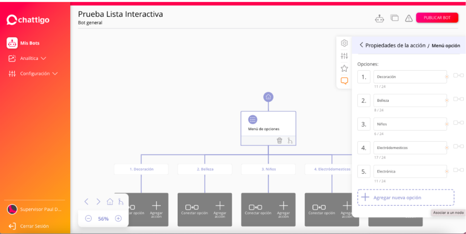 - Una vez que agregues tus opciones, ya habrás configurado tu lista de opciones interactivas.