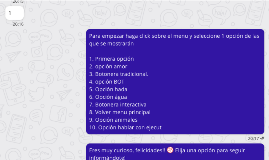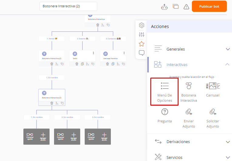 1. Ingresar al perfil del Bot a la acción “Menú de opciones”
