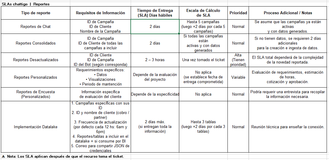 Nota: Este tipo de solicitudes pueden requerir ser derivadas al área de Proyectos, con lo cual sus SLA -originalmente de 7 días- pueden verse afectados.