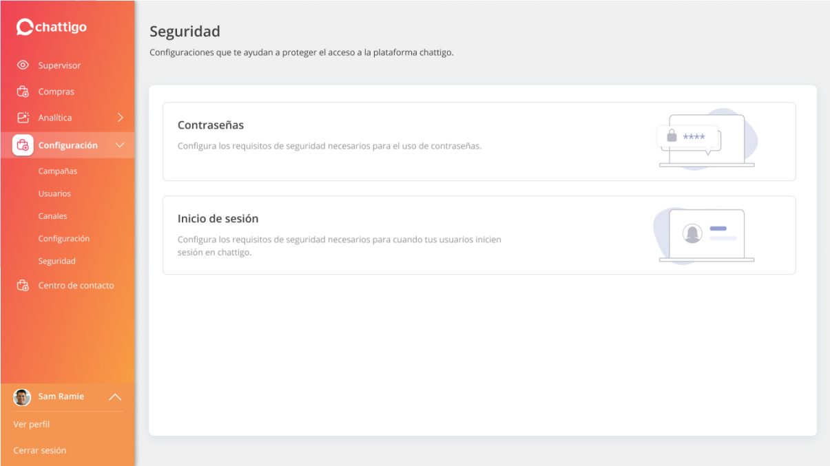 En nuestra plataforma puedes configurar tus contraseñas, cerrar sesiones por inactividad, protegerte ante inicios de acceso fallidos.
