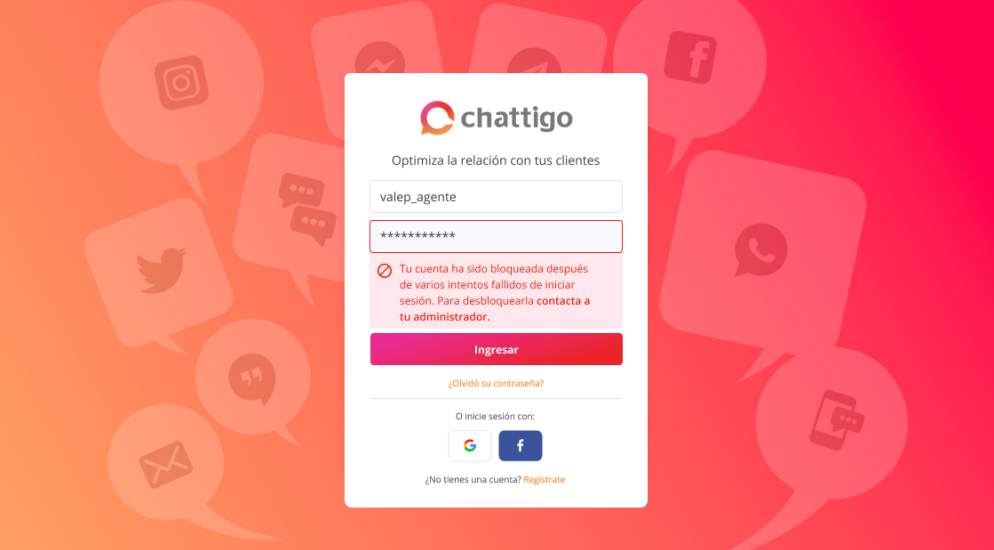 La cuenta de los agentes se bloqueará automáticamente cuando intente acceder con contraseñas erróneas. Es necesario contactar al administrador para reestablecer la contraseña.