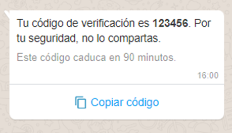 El texto predeterminado es: Tu código de verificación es 1. Por tu seguridad, no lo compartas.