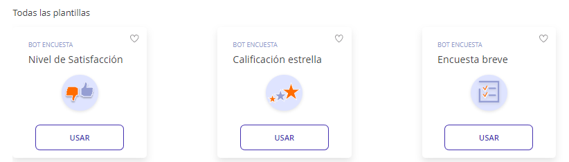 En el sub módulo plantillas, estarán disponibles los templates de bot para utilizar: