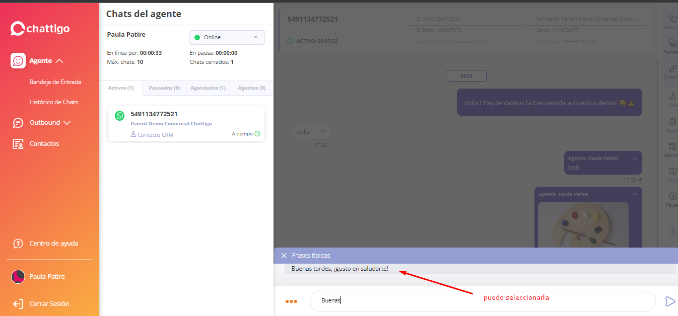 Cuando estemos escribiendo un mensaje al cliente, que empiece de la misma manera que nuestra frase típica, esta se nos mostrará:
