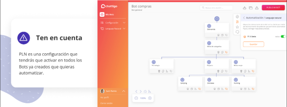 2- Luego debes activar PLN Beta desde tu Bot, Publicarlo y ¡listo! Comienza a
